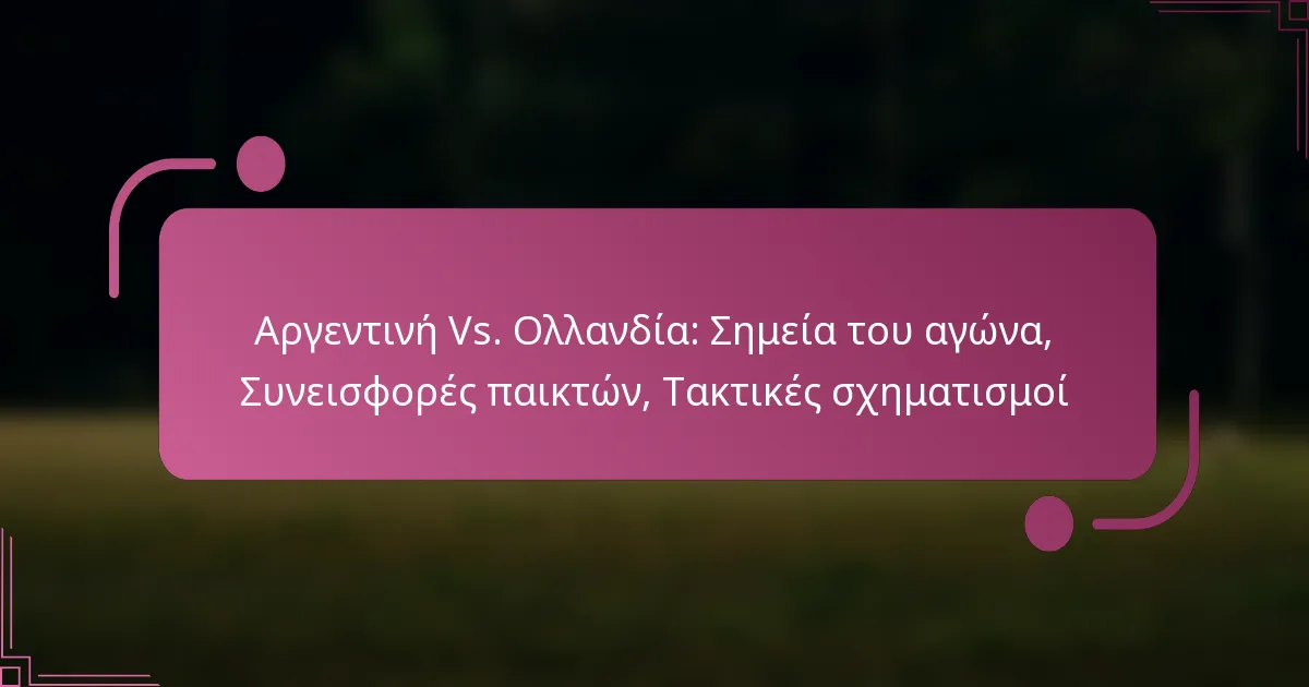 Ο αγώνας μεταξύ Αργεντινής και Ολλανδίας προσέφερε μια συναρπαστική επίδειξη ποδοσφαίρου, με έντονο ανταγωνισμό και καθοριστικές στιγμές. Με το πρώτο γκολ της Αργεντινής και την ισοφάριση της Ολλανδίας, το παιχνίδι περιπλέχθηκε περαιτέρω από αμφιλεγόμενες αποφάσεις διαιτητών. Οι ατομικές επιδόσεις των παικτών ήταν καθοριστικές, επιδεικνύοντας δεξιότητες που διαμόρφωσαν το αποτέλεσμα, ενώ οι τακτικές σχηματισμοί 4-3-3 για την Αργεντινή και 4-2-3-1 για την Ολλανδία πρόσφεραν στρατηγικό βάθος στην αναμέτρηση.