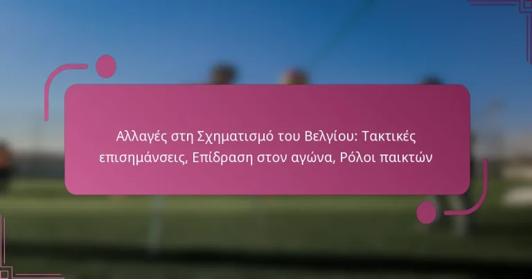 Αλλαγές στη Σχηματισμό του Βελγίου: Τακτικές επισημάνσεις, Επίδραση στον αγώνα, Ρόλοι παικτών