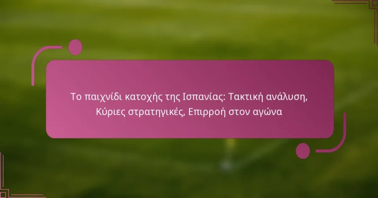 Το παιχνίδι κατοχής της Ισπανίας: Τακτική ανάλυση, Κύριες στρατηγικές, Επιρροή στον αγώνα