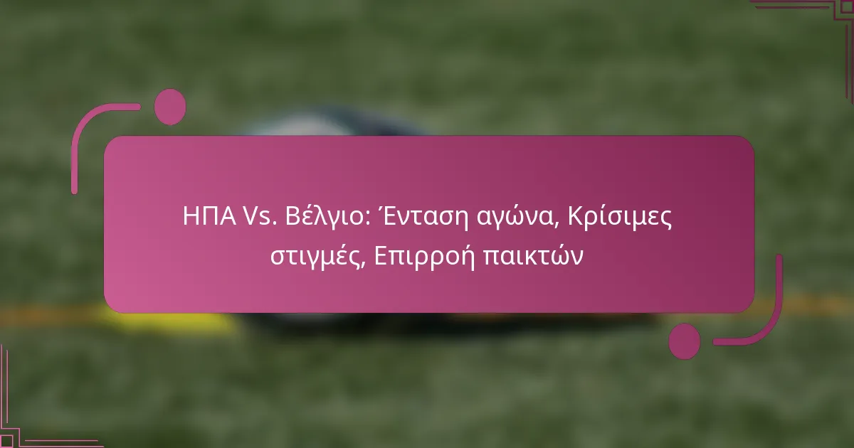 Ο αγώνας ποδοσφαίρου ΗΠΑ – Βέλγιο παρουσίασε υψηλή ένταση, χαρακτηρισμένη από τη σωματική και ψυχική καταπόνηση των παικτών. Κρίσιμες στιγμές, όπως τα καθοριστικά γκολ και οι αποφάσεις διαιτητών, έπαιξαν σημαντικό ρόλο στη διαμόρφωση της ροής του παιχνιδιού. Επιπλέον, η επίδραση των διακεκριμένων παικτών και των δύο ομάδων ήταν καθοριστική για την έκβαση του αγώνα και τη συνολική ροή.